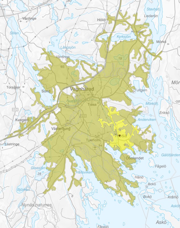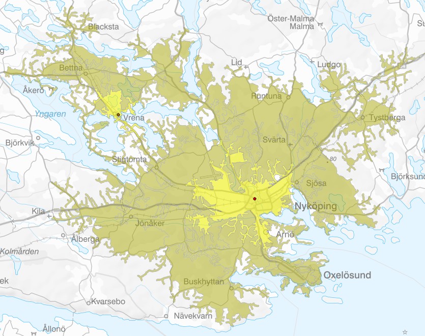 Bärbar stege för utrymning finns i Sörmlandskustens Räddningstjänsts alla fyra kommuner (Nyköping, Oxelösund, Trosa, Gnesta). Det innebär att utrymning med bärbar stege kan påbörjas inom 10 minuter i följande tätorter (ljusgrön/gul färg i kartor dit nedan länkar går visar att insatstiden är 10 minuter, mörkgrön färg visar att insatstiden är 20 minuter):