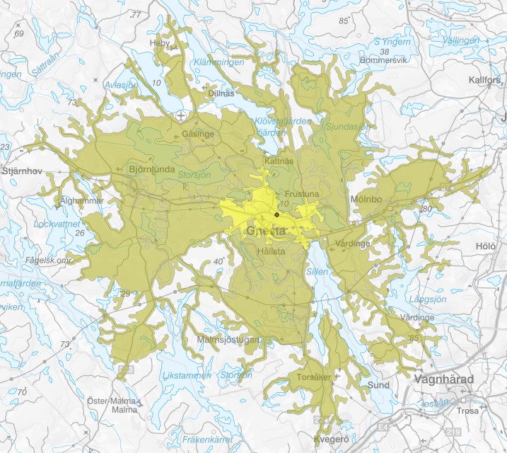Inom 20 minuter nås, med några undantag, samtliga tätorter inom Sörmlandskustens räddningstjänst geografiska område för utrymning med bärbar stege.